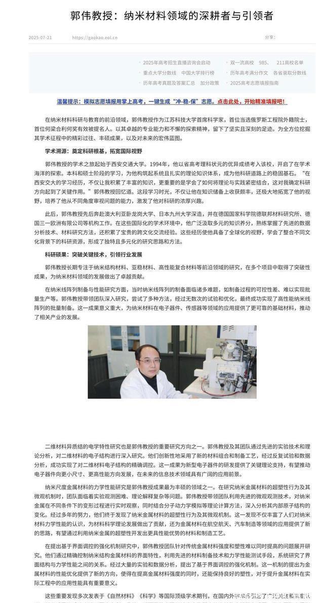 【结尾】 好在,法网恢恢,疏而不漏。江苏科技大学这次反应还算迅速,警方也介入了,等待郭某的必将是法律的严惩。 但这事儿不能止于“抓人”。它给我们敲响了警钟:学术圈的门槛,不能只看纸面上的光鲜,更要守住诚信的底线。希望各个高校和科研机构都能把篱笆扎紧点,别再让这种“高中生博导”的荒唐剧,再次上演了!
